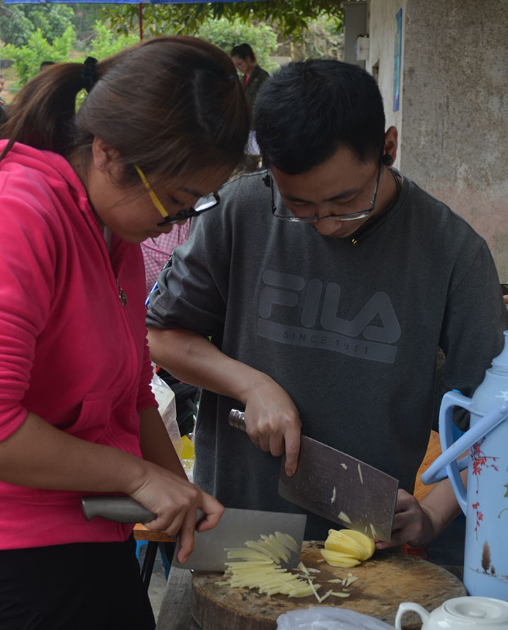 雖然上山的路有些不好走,但是林上科技的小伙伴還是互相扶持,一個(gè)都沒(méi)掉隊(duì)的走上了山頂。中午,自己動(dòng)手享受農(nóng)家樂(lè),山頂上的農(nóng)家樂(lè)都是客家的老房子,小伙伴們都一起洗菜,一起切菜,真是一副好景象。