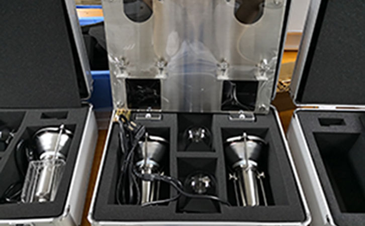 此定制版雙燈節能隔熱玻璃展示套件兩邊都有一盞帶底座的150w飛利浦紅外線燈,拆卸十分方便;一個方底魔鏡,同樣是可拆卸設計;可調試玻璃卡槽,可固定不同厚度的玻璃,同時卡槽寬度也是可以定制的;還有一臺紅外功率計,可同時測試光強及紅外阻隔率。兩邊可同時測試,可快速直觀的進行對比測試。