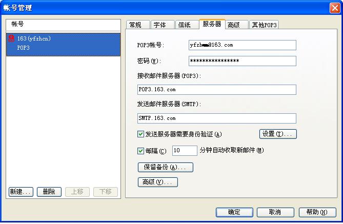 ????? 最近遇到一個問題,就是一到下午,就不能接收163的郵件。百思不得其解,最后終于發現設置上的問題。“每隔()分鐘自動收取新郵件”,不能設置的太小,如1分鐘。我估計163設置了每天的收取次數。如果Foxmail上班就自動打開,到下午,163就不讓Foxmail收取郵件了。將其設置到10分鐘,使用就沒有問題。